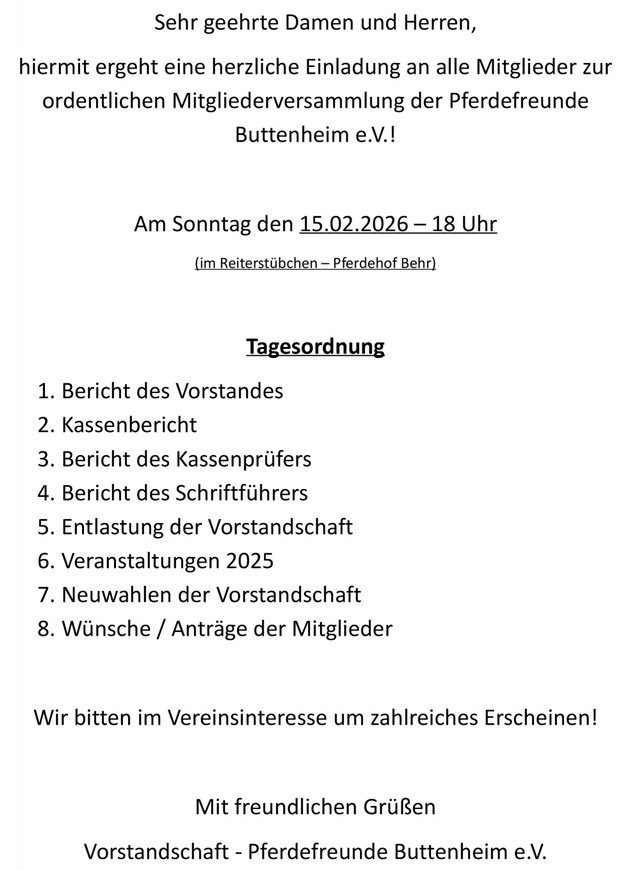 MITGLIEDERVERSAMMLUNG - PFERDEFREUNDE BUTTENHEIM